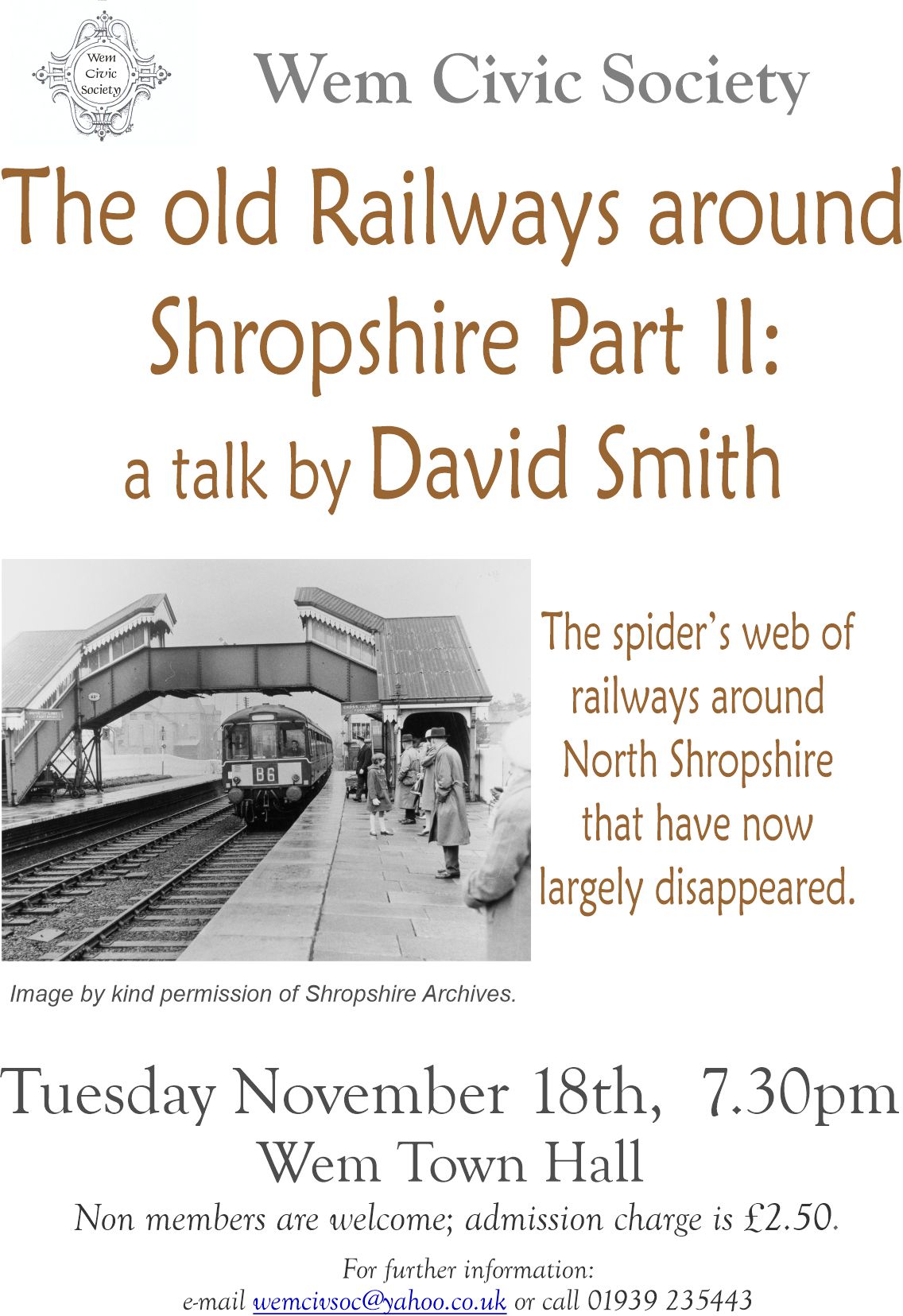 Research is continuing into a number of areas including the history of Wem and the surrounding villages. Publications are available for sale.